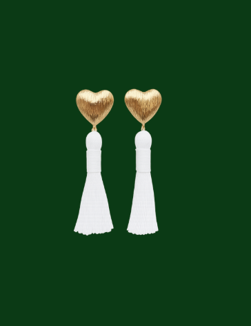 Herzohrringe mit einer weißen Tassel.